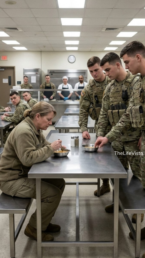 That afternoon, no one paid attention to the woman sitting alone in the corner of the mess hall.