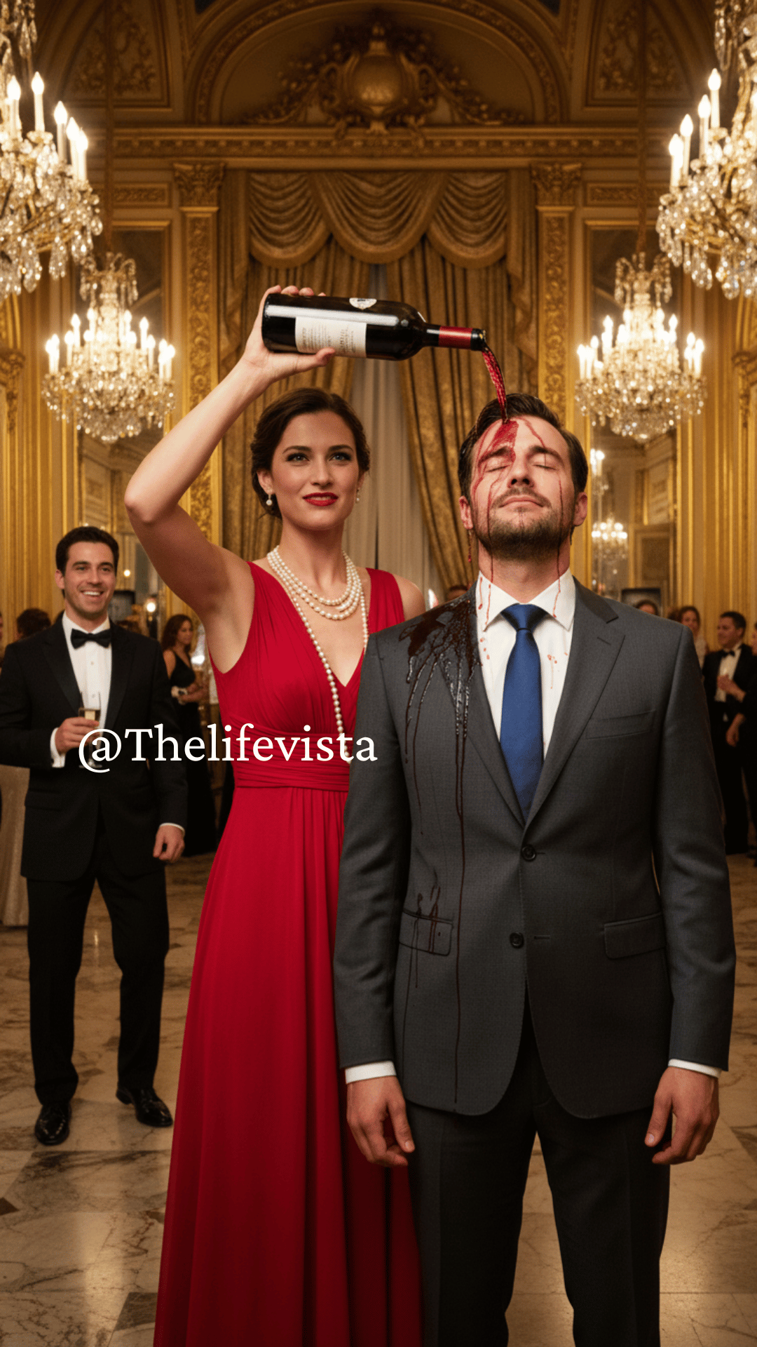 A dark splash spread across Jake’s chest, dripping down the fabric in slow humiliation. Laughter echoed around them as Emma leaned forward, her perfume suffocating.