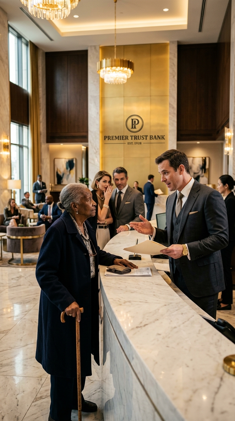 “I believe you may be in the wrong place,” he replied, his tone polite in structure but edged with something unmistakably condescending. “Our services here are tailored for high-net-worth clients. There are other branches that might better suit your needs.”