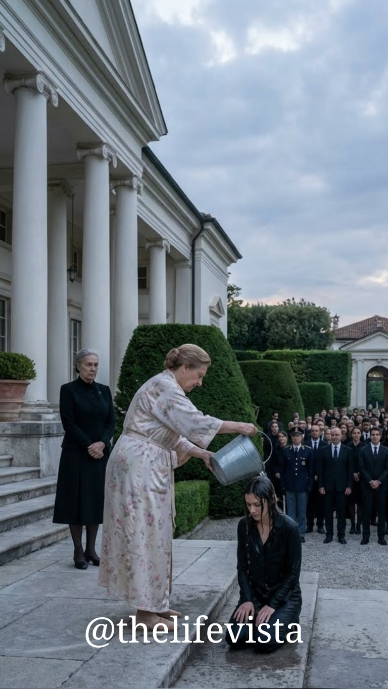 Then I tipped it. The gray water didn’t splash—it fell, heavy and deliberate, drenching her front, soaking into her clothes, streaking her face with streaks of old stone and detergent. The sound of it against her chest echoed through the long courtyard like a slap you pretend wasn’t meant for you.
