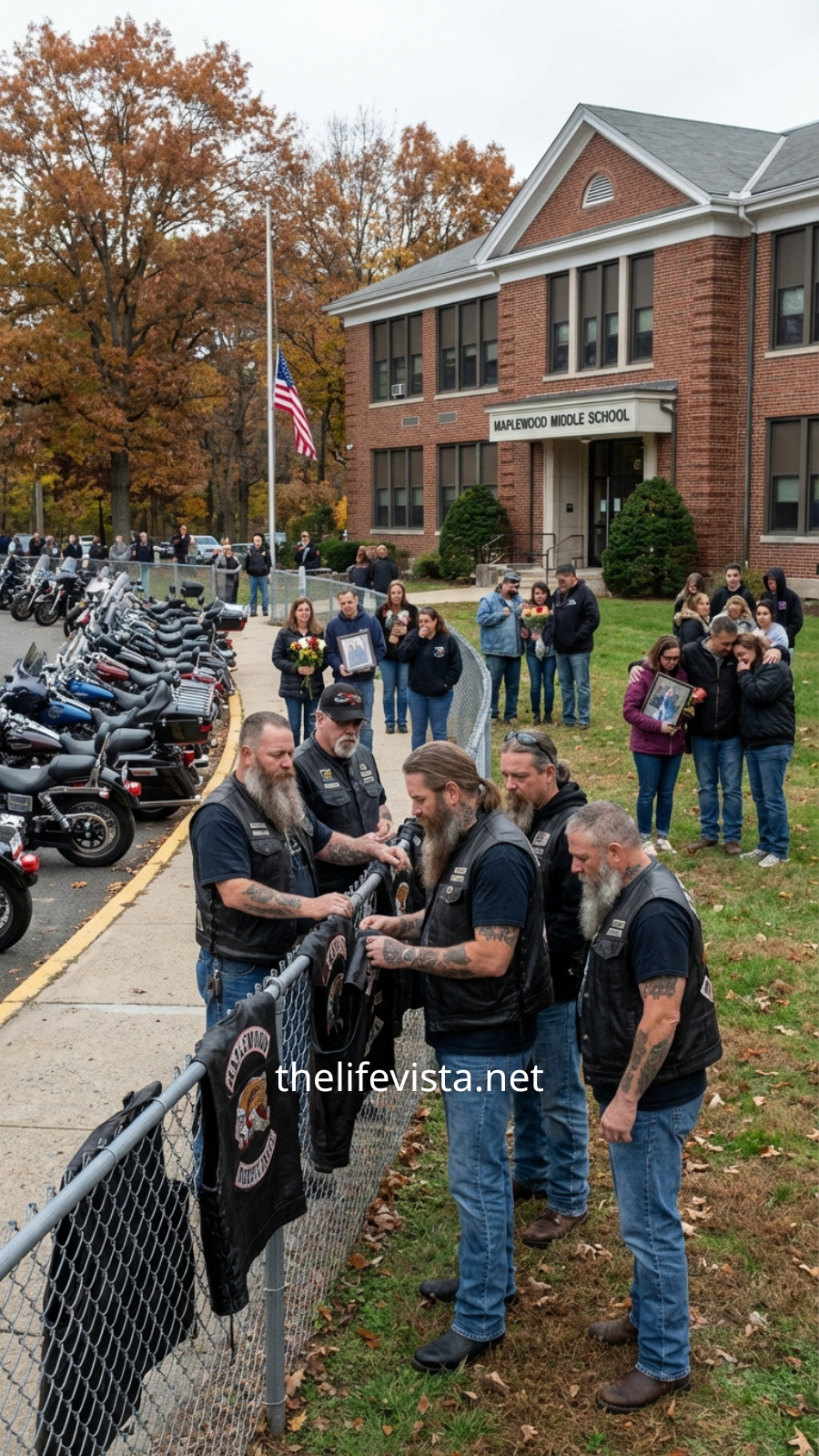 Thirty Bikers Rode Silently Into a Middle School and Hung Their Vests on the Fence After a 13-Year-Old Girl’s Tragic Death—As Parents Grew Suspicious, Their Leader Stepped Forward to Reveal a Truth No One Was Ready to Hear