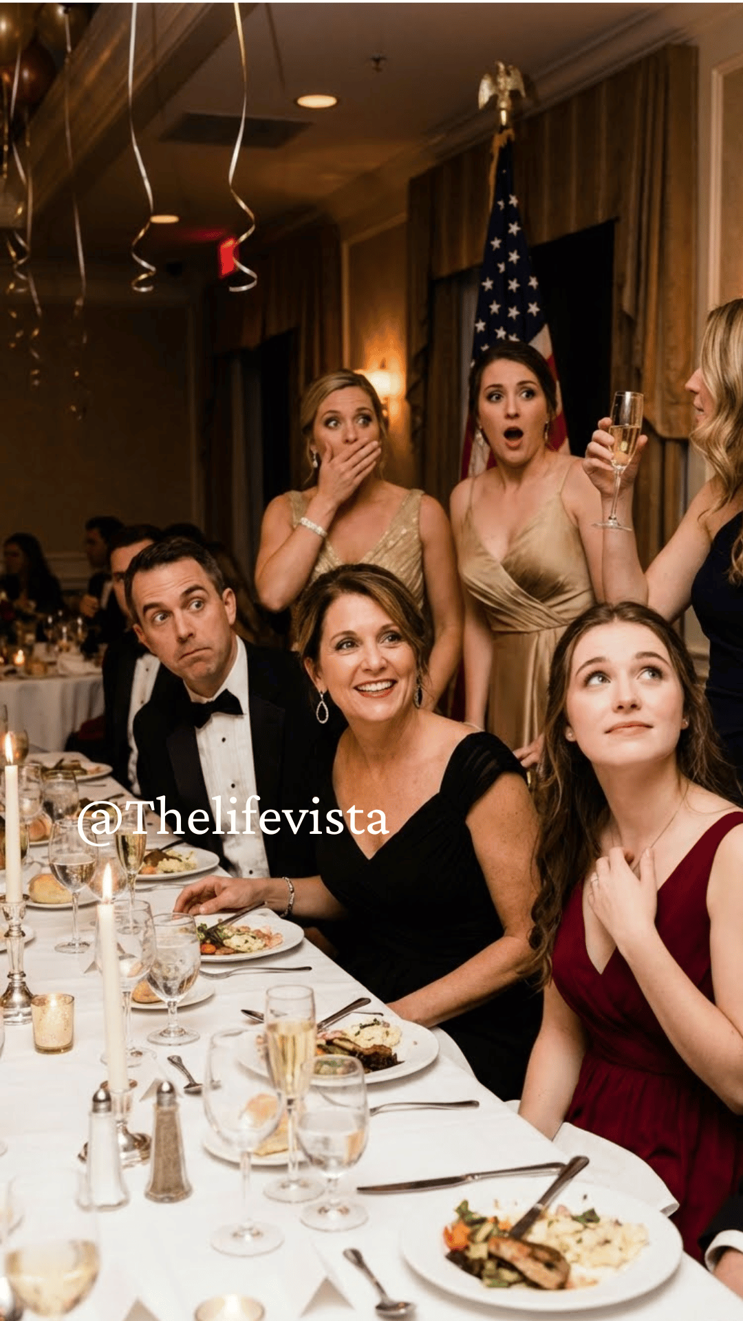 Style: Cinematic realism, dramatic, emotionalSetting: Luxury old-money restaurant at night, warm chandelier lighting, elegant guests Prompt: A cinematic 10-second scene inside an elegant old-money restaurant at night. Warm...
