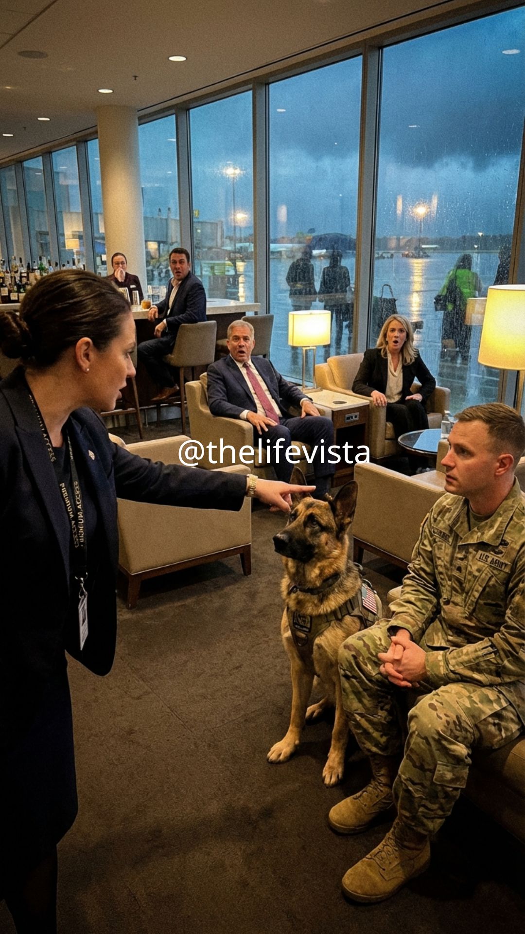 Vanessa approached with firm, controlled steps, her heels clicking faintly against the floor as she moved with a sense of certainty that left no room for doubt. Her expression was already set before she spoke, her eyes fixed not on Lucas, but on Shadow, as if she had already decided what needed to happen. “Sir, dogs are not allowed in this lounge. You need to remove the animal immediately,” she said, her tone sharp and final, cutting through the air with precision. It wasn’t a question, and it wasn’t a request—it was a conclusion delivered without hesitation.