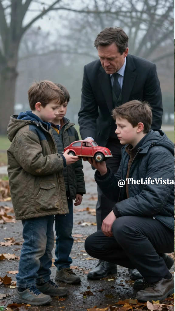 The two boys stood in front of him now, their identical faces lifted toward him with a mixture of uncertainty and determination. One of them held out the small red car, both hands supporting it carefully as if it were something that could break if mishandled.