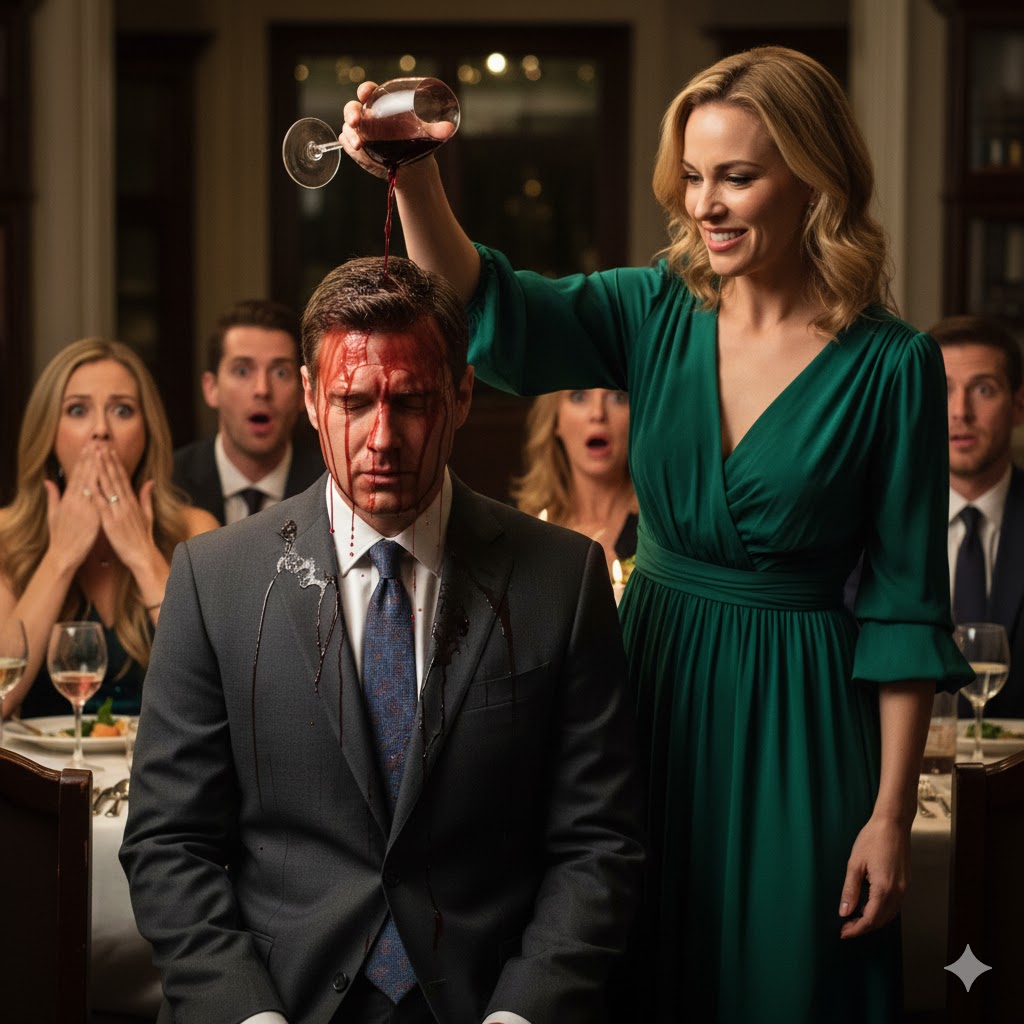 A few people gasped. And then, in a flash of red, she poured her wine over his face.