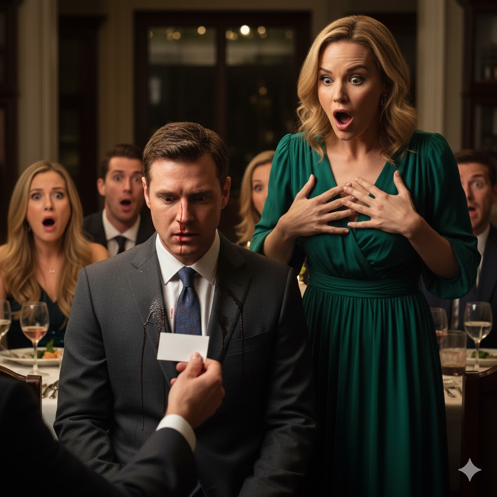 The crimson liquid dripped from his jaw, staining his collar, running down onto the marble floor. Grant didn’t flinch. He simply took out a handkerchief, wiped his face once, and said calmly: