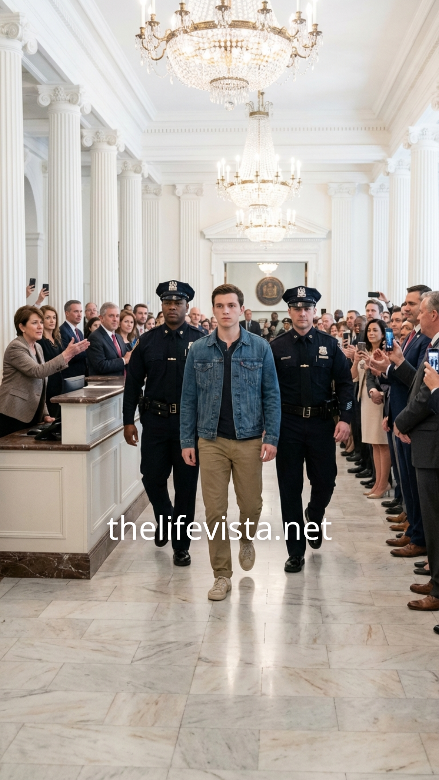 Outside, camera flashes began flickering through the lobby windows. News crews had arrived. Tripods unfolded. Boom microphones extended. The building, once a refuge for appearances, had become a stage for truth.