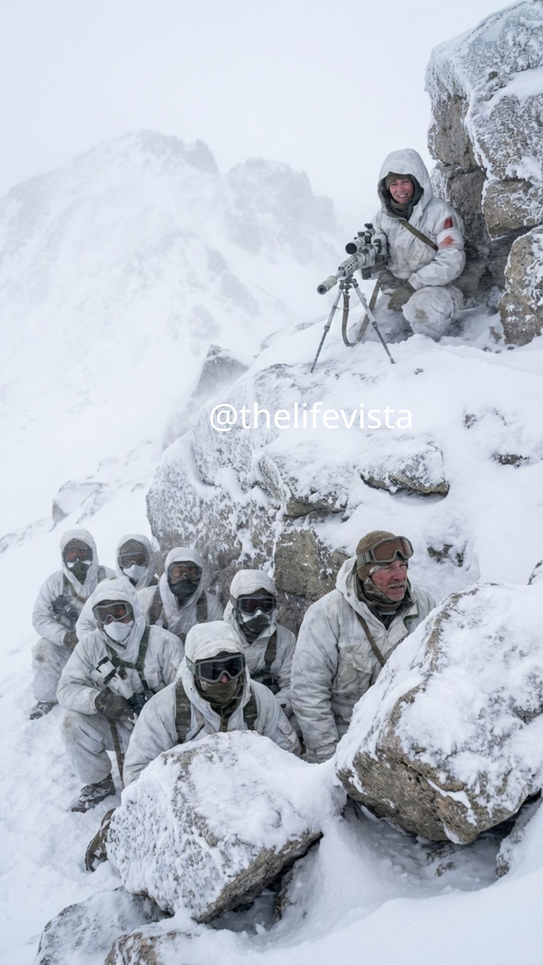 They pushed east along the ridgeline, using the storm as cover in the way only men who trained in arctic conditions could — moving with it rather than against it, becoming part of the white chaos rather than fighting it. Forty minutes. Slow. Deliberate. The cold worked on the fingers first, then the face, then the thinking.