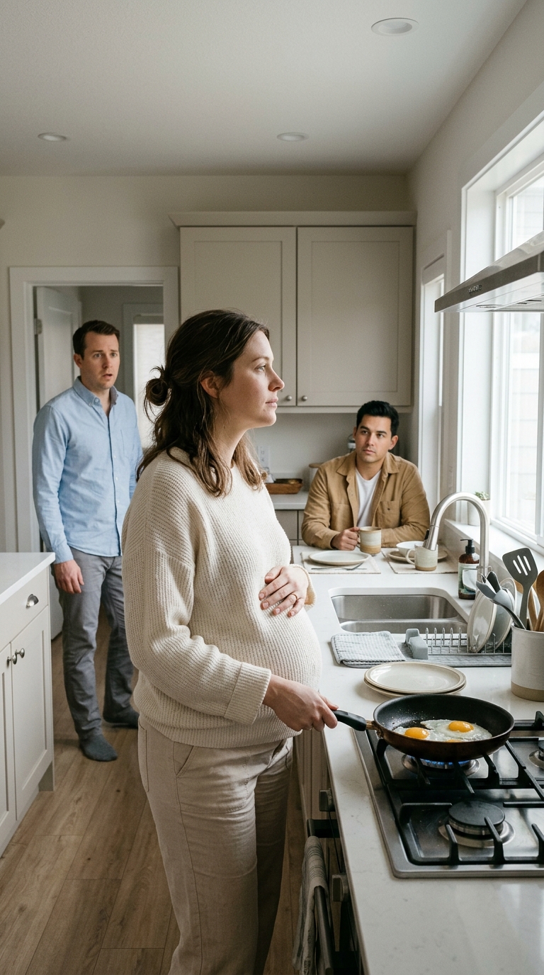 “What Are You Doing Here?” The Morning After My Husband Hit Me While I Was Pregnant, I Was Still Making Breakfast Like Nothing Had Happened — Waiting For The Moment He Walked Into The Kitchen And Froze When He Saw Who Was Sitting In My House.