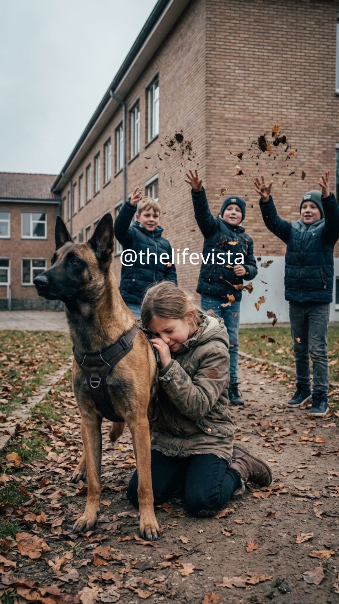 He was a Belgian Malinois, though most of the kids didn’t know or care about that. To them, he was just “the broken dog,” the one with three legs, the one whose coat was marked with scars that didn’t match the kind of stories children usually told about pets. His front left leg was gone, taken by something none of them could imagine and none of them tried to understand. And yet, even with that loss, there was nothing fragile about him. He stood steady, balanced in a way that suggested years of adapting, his posture calm but alert, his amber eyes scanning everything with a quiet intensity that didn’t need to announce itself to be felt.