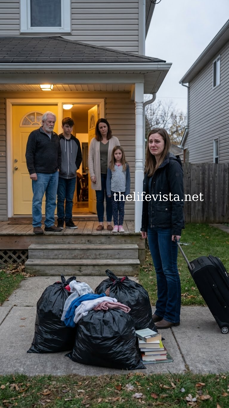 Jacob didn’t move. The hallway light flickered above the Matthews, illuminating their soaked clothes and strained faces. Laura clutched a tote bag stuffed with paperwork; Brian carried a duffel bag and a defeated expression he’d never worn before.