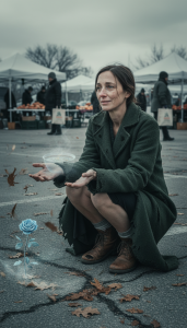 One chilly afternoon, as winter began to fade, I stopped by the local farmer’s market. That’s where I saw her — a thin woman sitting near the parking lot, her hand outstretched, asking for food. Her coat was worn, her shoes nearly torn through, but what caught my attention were her eyes — soft and kind, yet shadowed by deep sadness.