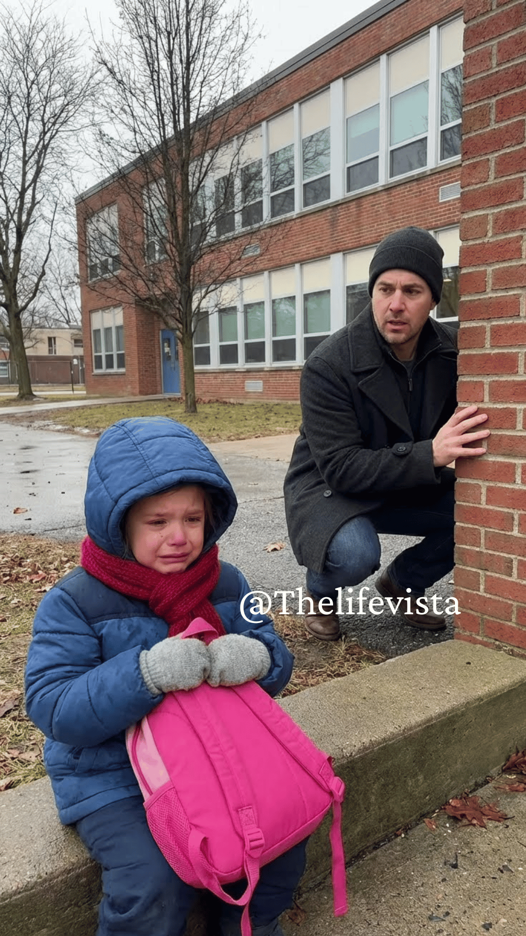 By the time Hannah reached the school, her daughter was sitting on a bench in the entrance hallway, wrapped in a thin blanket the nurse had found, her lips pale and her fingers icy. Outside, freezing rain tapped against the windows. Hannah swallowed the ache in her chest as she lifted her daughter into her arms.