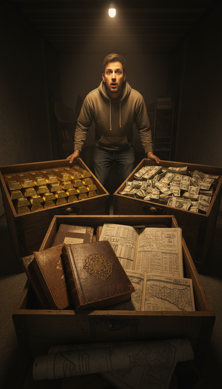I returned to the storage unit the next night. I opened the first crate and froze. Gold bars. Dozens of them, stacked in neat rows, their soft, heavy glow unmistakable. The second crate was filled with cash. But it was the third crate that truly held the inheritance. It contained leather-bound journals, my uncle’s meticulous records of his entire empire—accounts, investments, deeds to properties scattered across the country that my cousins knew nothing about. It was not just wealth; it was a road map.