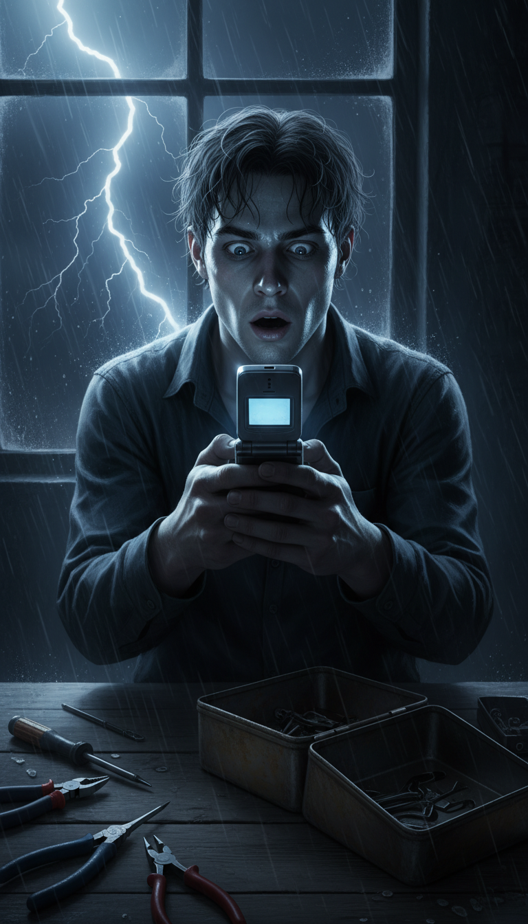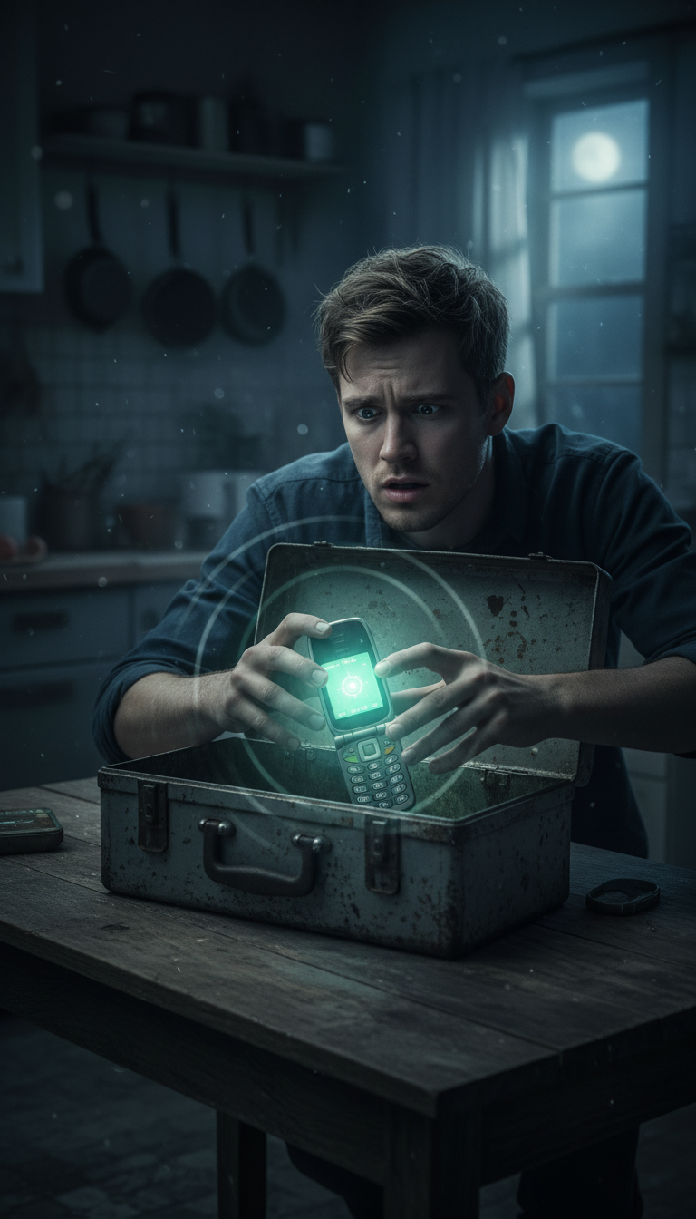 Inside was not money or gold. It was an old, dusty flip phone. I stared at it, bewildered. Why would my uncle hide a phone in a toolbox? On a whim, I pressed the power button. To my absolute shock, the screen lit up with a faint, ghostly glow.