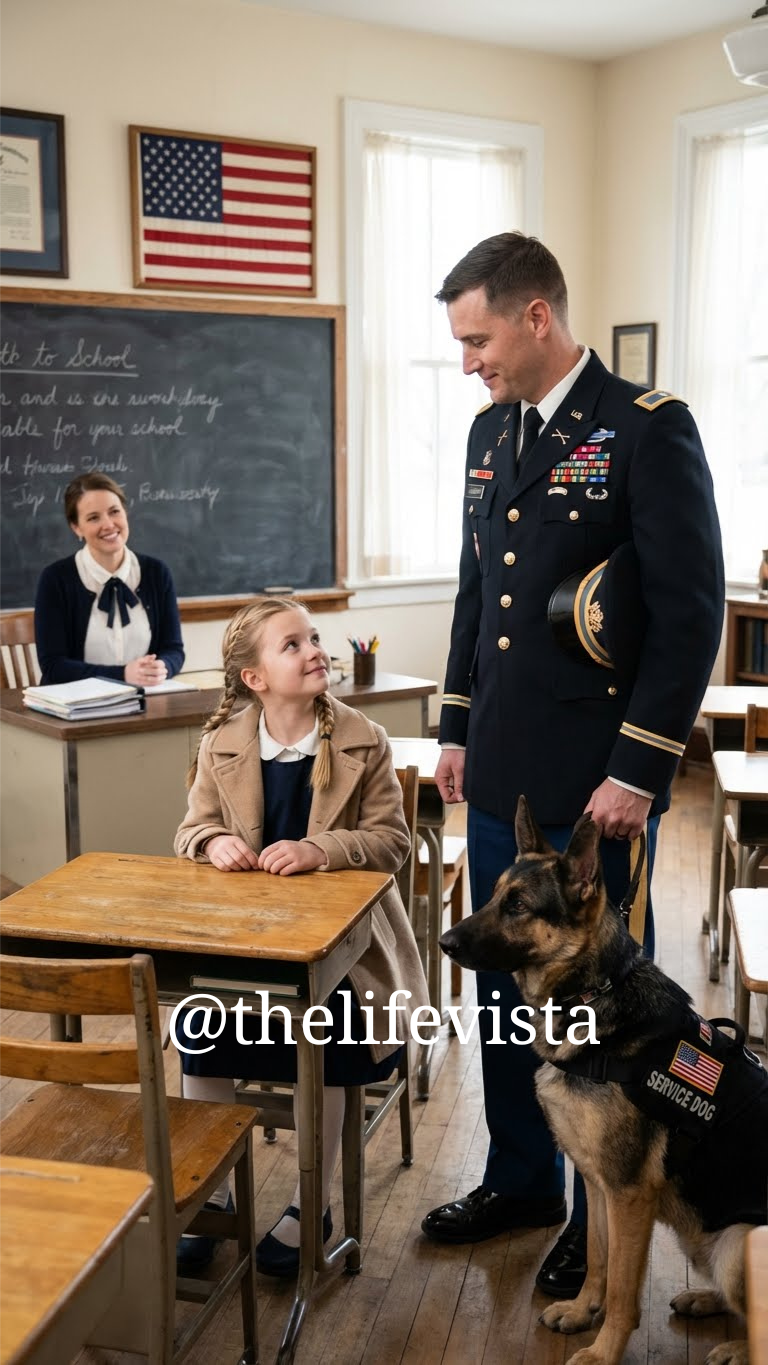 The accident that took my wife took a part of Ava, too. She lost her left leg below the knee. But she didn’t lose her spirit. She learned to walk on a prosthetic, learned to run, and learned to smile again. Or so I thought. Yesterday morning started like any other. I dressed in my usual olive-green field jacket and boots—habits from the service die hard. Ava was quiet. Too quiet. She sat at the kitchen table, pushing her cereal around with a spoon. “You excited for school, Ava?” I asked, trying to sound cheerful. She didn’t look up. “I guess.” Shadow was pacing by the door. He’s a retired military working dog. He knows my moods better than I do, and lately, he’s been glued to Ava’s side. We drove to Silver Creek Elementary in silence. The school is a pretty building, red brick surrounded by maple trees turning gold for autumn. It looks like a postcard. But when we walked up to the main entrance, Shadow stopped. He didn’t just stop; he planted his feet. His ears went flat against his skull. A low, vibrating growl rumbled deep in his chest. “Shadow, heel,” I commanded softly. He ignored me. His amber eyes were fixed on the front doors. I tugged the leash. “Easy, boy. It’s just school.” He moved, but his body was tense, like a coiled spring. We walked down the hallway to Class 3A. The receptionist had told me that Ava was lucky. “Miss Evelyn Thorne is a legend,” she’d gushed. “She’s the most beloved teacher in the county.” When we reached the door, Miss Thorne was there greeting the students. She was immaculate. Perfect hair, a lavender silk scarf, and a smile that seemed painted on. “You must be Mr. Sterling,” she said. Her voice was like syrup. “And this is sweet Ava.” She reached out to touch Ava’s shoulder. Shadow lunged. He didn’t bite, but he barked—a sharp, warning snap that echoed off the lockers. “Shadow!” I grabbed his collar, pulling him back. “I am so sorry. He’s… he’s never done that.” Miss Thorne didn’t flinch. Her smile didn’t even waver, but her eyes… for a split second, they looked cold. Ice cold. “It’s quite alright,” she said smoothly. “Animals can be unpredictable. Perhaps he should wait in the truck.” I crouched down to hug Ava. “I’ll be back at 3:00, okay? You got this, kiddo.” She held onto me for a second too long. Her small hands gripped my jacket tight. “Okay, Daddy,” she whispered. I walked away, dragging a reluctant Shadow with me. But I couldn’t shake the feeling in my gut. It was the same feeling I used to get on patrol right before an ambush. The hair on the back of my neck was standing up. I put Shadow in the truck, but I didn’t leave. I stood by the fence, lighting a cigarette just to calm my nerves. I told myself I was being paranoid. It’s just a third-grade classroom. But Shadow was watching the window, whining. I tossed the cigarette and walked back toward the building. I didn’t go to the office. I walked around the side, through the grass, until I was standing outside the window of Class 3A. The blinds were half-open. I peeked inside. My heart hammered against my ribs. The class was silent. Dead silent. Miss Thorne was standing at the front. But she wasn’t smiling anymore. She was pointing at Ava. Ava was standing up. She was struggling to balance on her crutches, her face bright red. I pressed my ear against the cold glass. Miss Thorne’s voice was muffled, but I could hear the tone. It wasn’t sweet. It was sharp. Mocking. “Stand up straight,” I heard her say. “We don’t make exceptions for laziness here.” Laziness? My daughter has a prosthetic leg. Then, the teacher said something else. Something that made the other children erupt into laughter. Ava dropped her head, her shoulders shaking. She was crying. I watched as the “beloved” teacher leaned in closer to my daughter, a cruel smirk playing on her lips. That was it. My blood ran cold, then hot. I wasn’t a civilian in that moment. I was a father, and I was watching a threat. I turned from the window and headed for the door. I was about to tear that classroom apart.