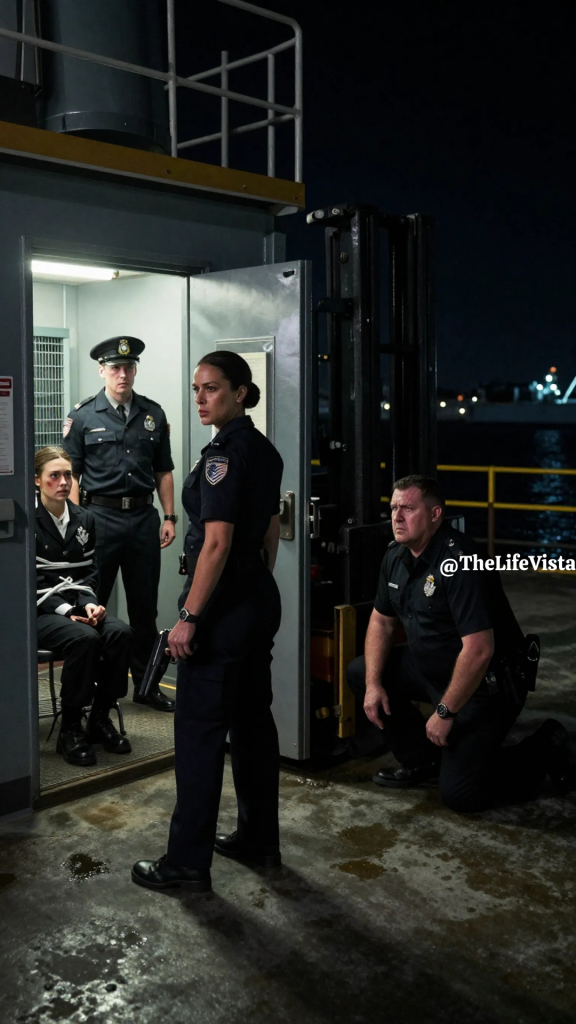 The energy inside the warehouse changed from imminent violence to frantic exposure. Medics hurried to Jenna while investigators began photographing everything before a single object could be disturbed. A folding table near the office held documents, manifests, access cards, and an encrypted hard case that immediately drew Naomi’s attention. Hollis’s phone was bagged. Sloan’s watch, tablet, credentials, and personal keyring were seized one item at a time. Jenna, once untied, almost collapsed when she tried to stand, and Isabel was at her side before the medics fully reached her, steadying her by the elbows while she shook with delayed terror and adrenaline. Jenna stared at her with disbelief, seeing the same woman she had eaten oversalted vegetables with in the galley and the stranger who had just disarmed an armed senior chief as though that had always been waiting beneath the surface. Captain Talbot approached only after the room was secured. His expression looked like something between shock and betrayal, not because Isabel had deceived his command, but because he was seeing the scale of what his executive officer had hidden under the seal of ordinary administration. He addressed her by rank, carefully, as though speaking the truth aloud made the whole thing more real. Lieutenant Varela, he said, I need a full explanation. Isabel answered that he would have one, and that he would also have evidence tying his executive officer and security chief to unauthorized record access, coercion of vulnerable personnel, suppression of complaints, manipulated shipping authorizations, and the death of Petty Officer Erin Maddox. Talbot’s jaw tightened so hard a muscle jumped near the hinge. He turned to look at Sloan, who until that night had probably stood beside him in command briefings with the same polished calm he wore in every photograph. Sloan said nothing. The silence around him had turned from control into collapse.