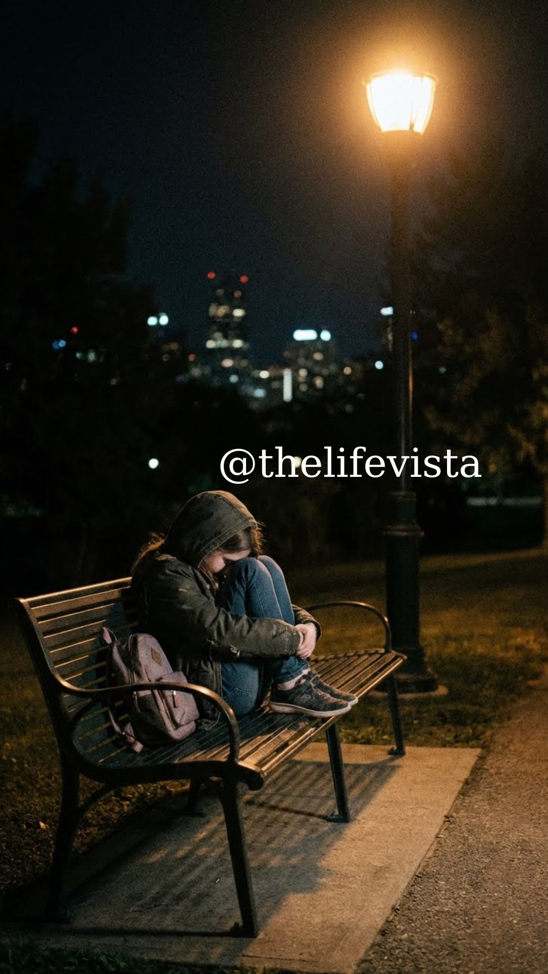 I tore out of the house and spent the next three hours driving around town—parks, bus stops, the library, anywhere she might have gone. Every minute felt like an hour. My heart pounded harder each time I passed a place where she wasn’t. The sun was setting when I pulled into Riverside Park, exhausted. I walked toward a row of benches under the dim orange glow of streetlights.