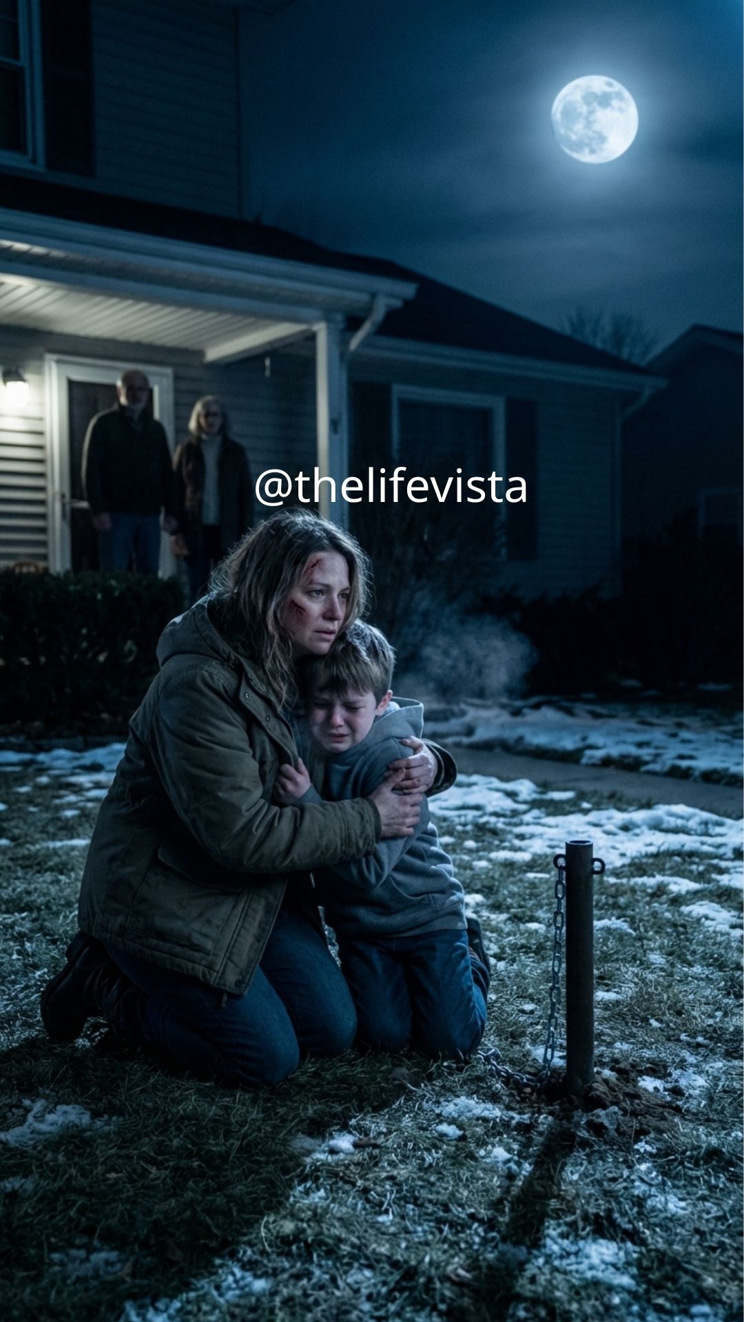 Eli Parker was in thin pajamas, barefoot, his wrists red from struggling. A heavy chain ran from a collar-like strap around his waist to a stake in the ground like he was an animal someone didn’t trust to stay put. He was shaking so hard his teeth clicked, and his eyes were wide and glassy, and the sight of my child reduced to something restrained and exposed in our own backyard tore through me with a kind of pain that felt too large for one body to hold.
