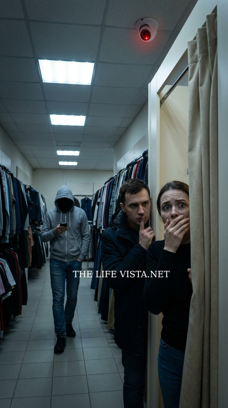 Outside, the first man moved to the neighboring fitting room and tapped the curtain once—lightly, like a polite knock. A woman’s voice answered, annoyed. He apologized and stepped away. Testing. Probing. Making sure which rooms were occupied.