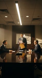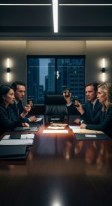 We all sat. The room hummed with quiet tension. Every word, every breath, every shifting chair was being captured by half a dozen hidden microphones.