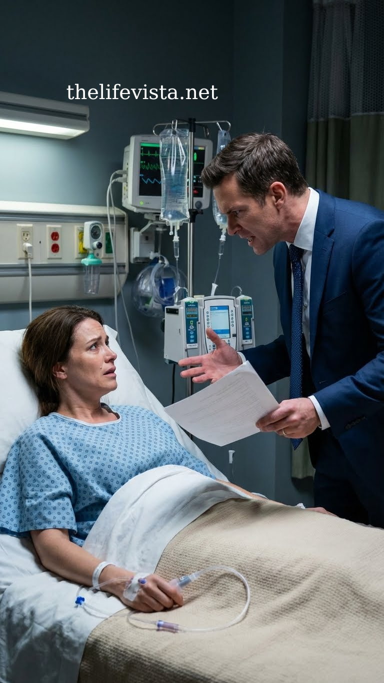 Not fully awake from the anesthesia, Harper blinked and saw her husband Ethan standing by the bed, a pile of documents in his hands.