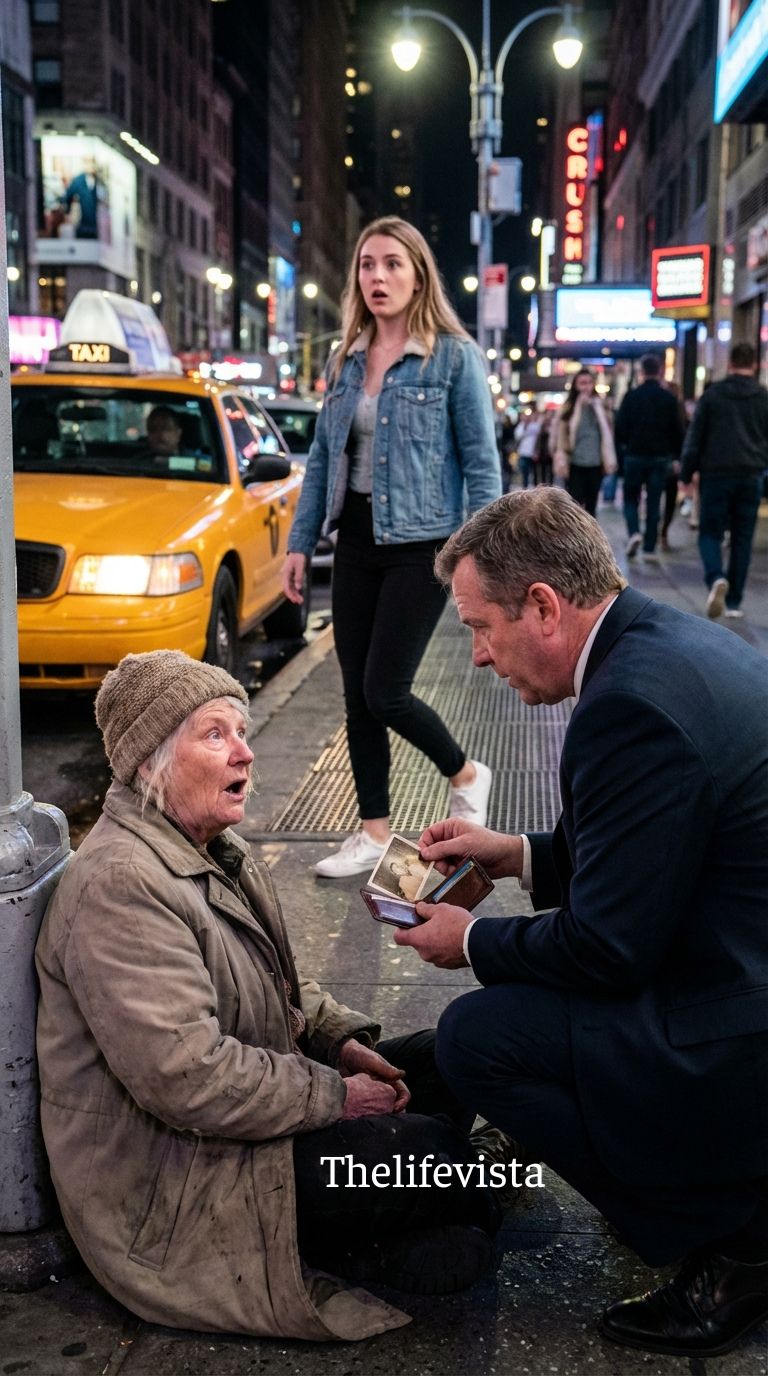 The evening air along Lexington Avenue carried that familiar restless rhythm that only New York seemed capable of producing, a strange mixture of impatience and quiet loneliness that floated between honking taxis, glowing storefronts, and the distant wail of ambulance sirens moving somewhere far downtown. People hurried along the sidewalk wrapped inside their own destinations, their eyes locked on glowing phone screens or office towers still shining with late-night work, and in the constant motion of that river of strangers, almost no one noticed the frail figure sitting beside a lamppost near the corner of 73rd Street. The old woman had positioned herself close to the wall of a closed bookstore, as if hoping the brick might shelter her from the cold wind creeping between the buildings.