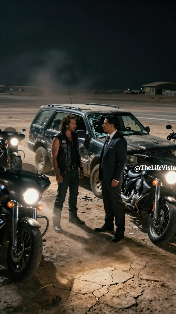Fifteen motorcycles tore through the desert night ten minutes later in a V formation that sounded like thunder rolling straight over the earth. Rourke led them with Silas at his side. Behind them came the chapter’s hitters, including Brick Donnelly, a silent giant of a man who looked built for breaking doors, and Mack Sutter, a former Marine who planned violence with the cold clarity of an engineer. They rode hard toward Whisper Creek Trailer Park, a dead patch of dirt outside Victorville littered with rusting single-wides and broken fences.