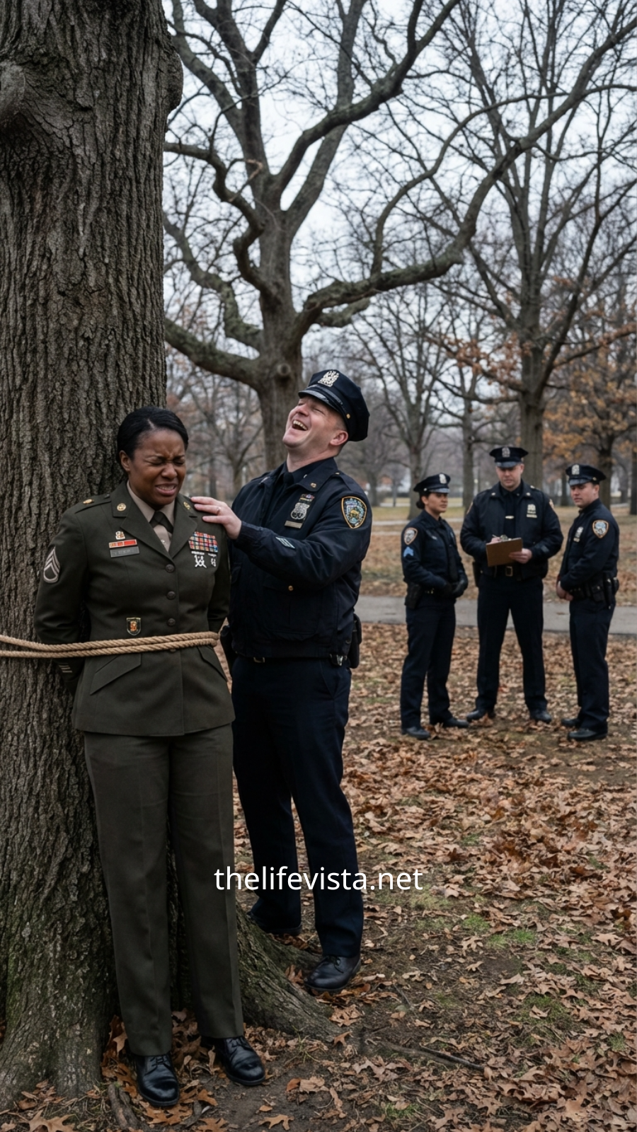 Bishop signaled to his team. Two military police officers stepped forward and positioned themselves between Simone and the deputies. Another service member began documenting the scene with a body-worn camera: the oak tree, the severed zip ties, the drag marks in the gravel, the number on the squad car.