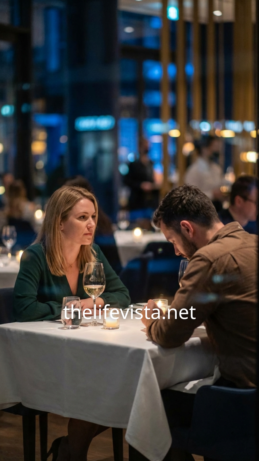 The waiter passed by, pretending not to notice two untouched tables waiting for people who never came. The restaurant hummed softly—low lights, muted music, the kind of place meant for conversations that lingered.