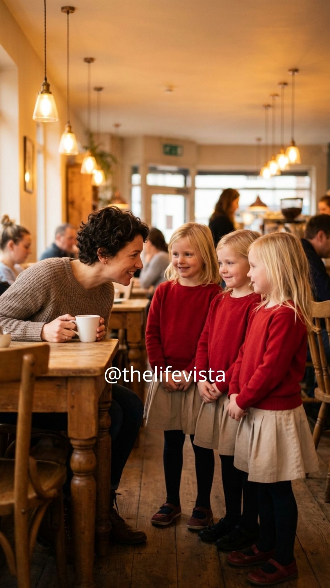 “We’re here about our dad,” the second one announces, with the solemn tone of a tiny attorney delivering a verdict. The third nods like she’s confirming evidence. “He feels really, really bad he’s late,” she adds, as if punctuality is a moral issue. “There was an emergency at his work, so he’s not here yet.” The first one watches your face carefully, like she’s studying whether you’re going to be nice or mean, and you realize children can read people with a clarity adults spend years unlearning. You glance around the café, half expecting an adult to sprint over and apologize. Instead, you catch a couple of amused smiles from nearby tables. The barista peeks over the counter like he’s watching live theater. Nobody looks alarmed. Nobody is rushing to scoop these girls up. Which means either they’re safe… or they’re too bold for danger to catch them.