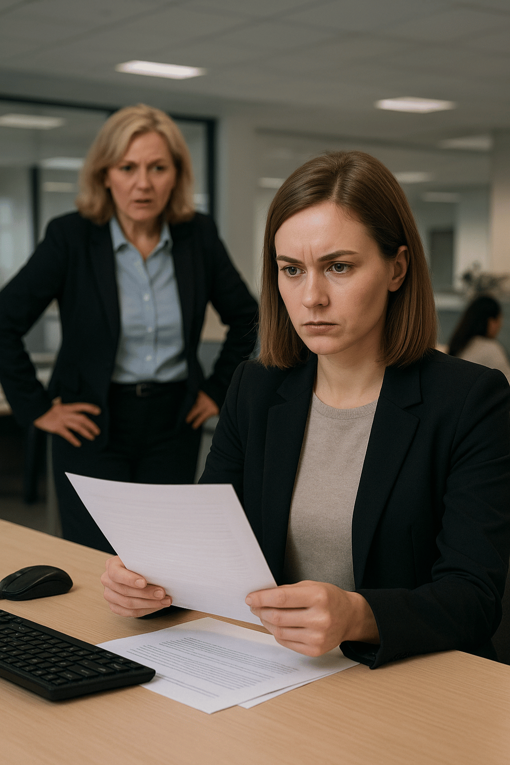 She stormed out of her glass‐walled office. The door closed — silence like a held breath. “My office. Now.” Her voice exploded.