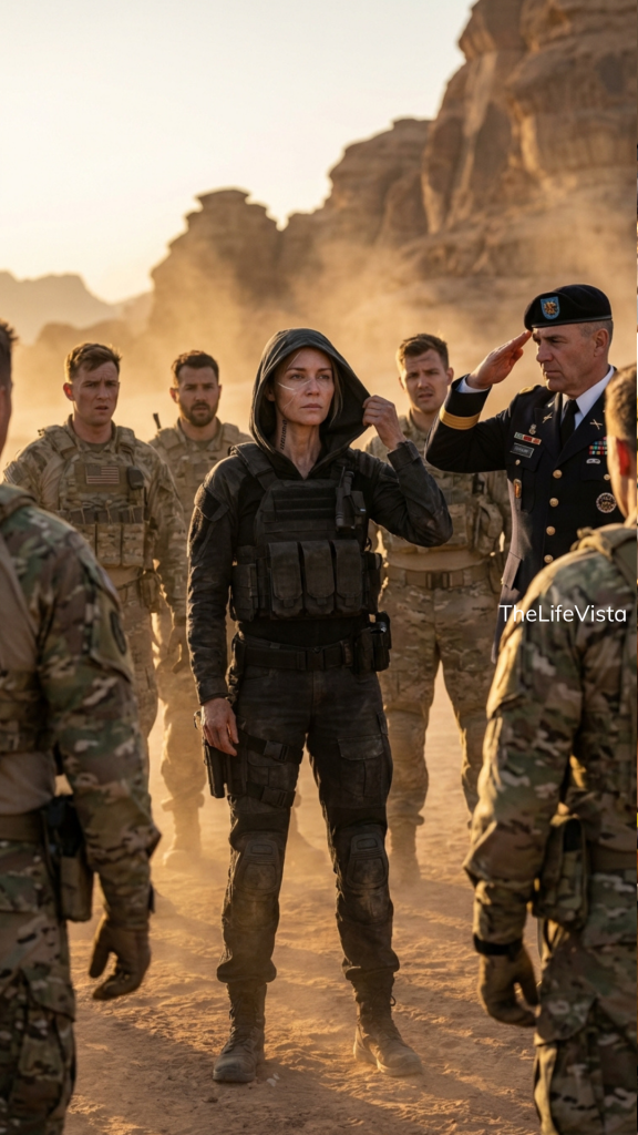 As the desert wind swept across the formation, a stunned silence settled over the group—because the woman slowly lifting her hood wasn’t just another operator. The truth hidden beneath it—her past, her scars, and the coordinates etched into her skin—was about to rewrite everything they thought they understood about strength, sacrifice, and legacy.