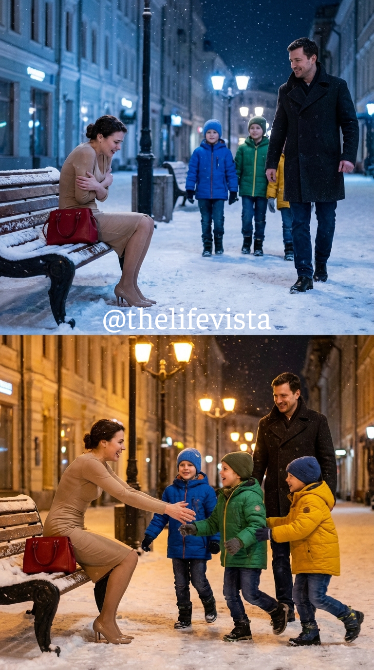 She tried to stand and realized the cold had taken more than comfort. It had stolen strength. Jonathan steadied her without making a show of it, guiding her out of the shelter as if this was normal, as if helping a stranger survive wasn’t a rare act but simply the correct one. They moved through the snow as a strange little procession, five silhouettes under streetlights, until they reached a two-story house with warm light glowing behind its windows like a promise.